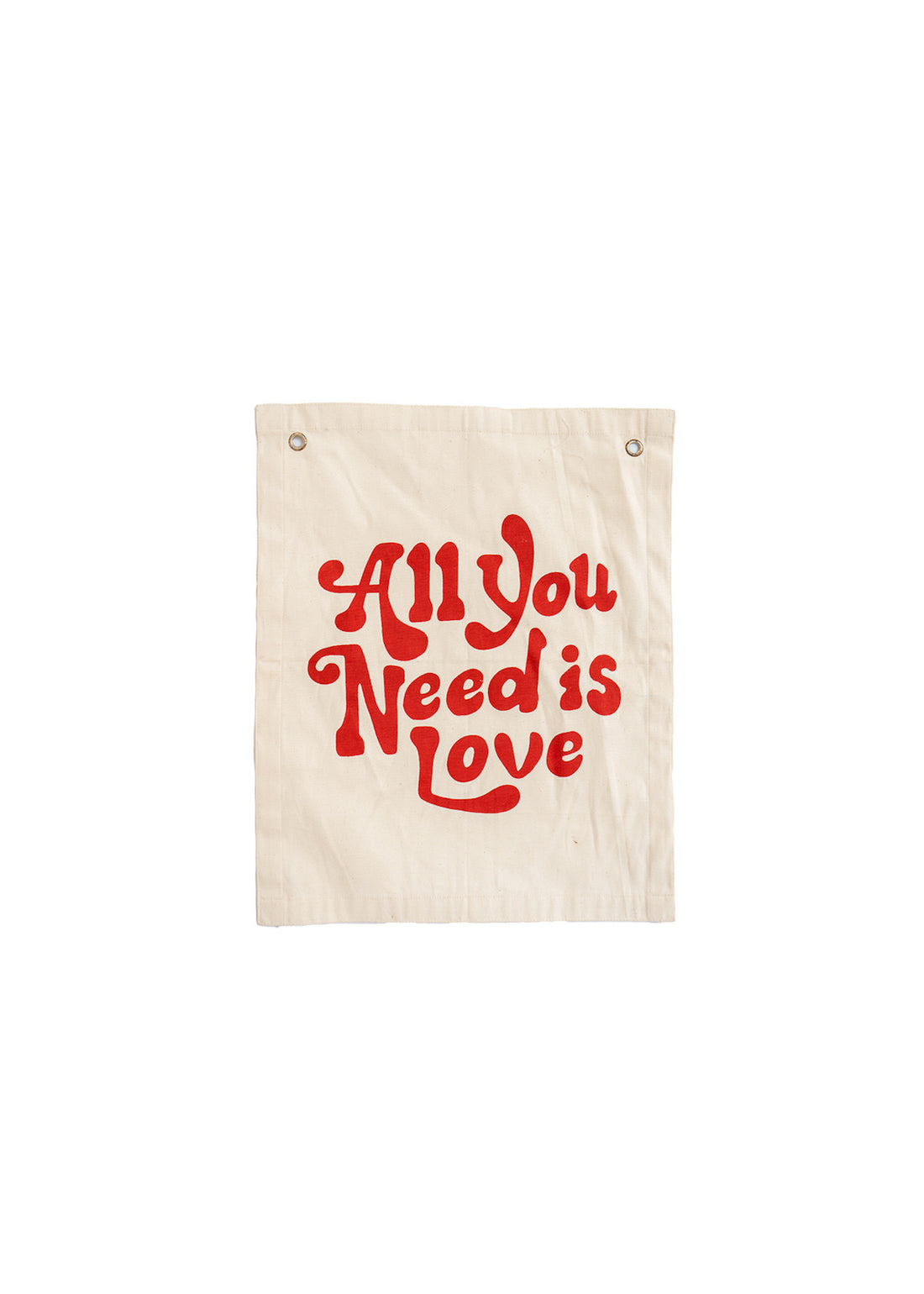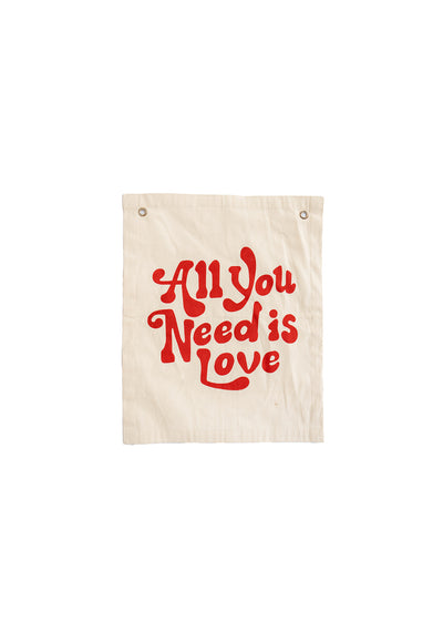 Add a timeless reminder to your walls with the “All You Need Is Love” Canvas Banner, a bold and heartfelt piece of handmade wall décor. Each banner is sewn and screen printed by hand in Mombasa, Kenya, using natural canvas and a striking red print.