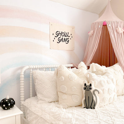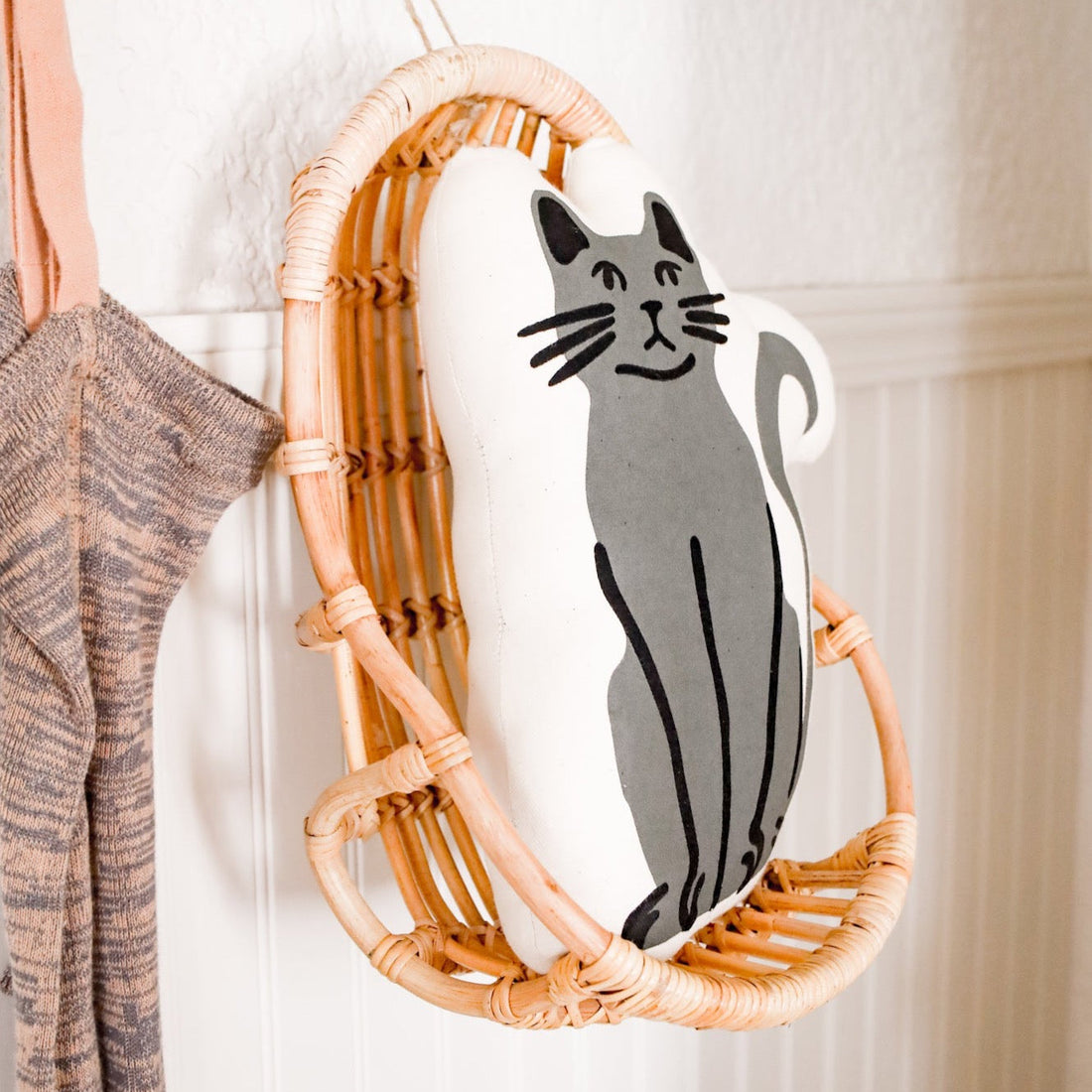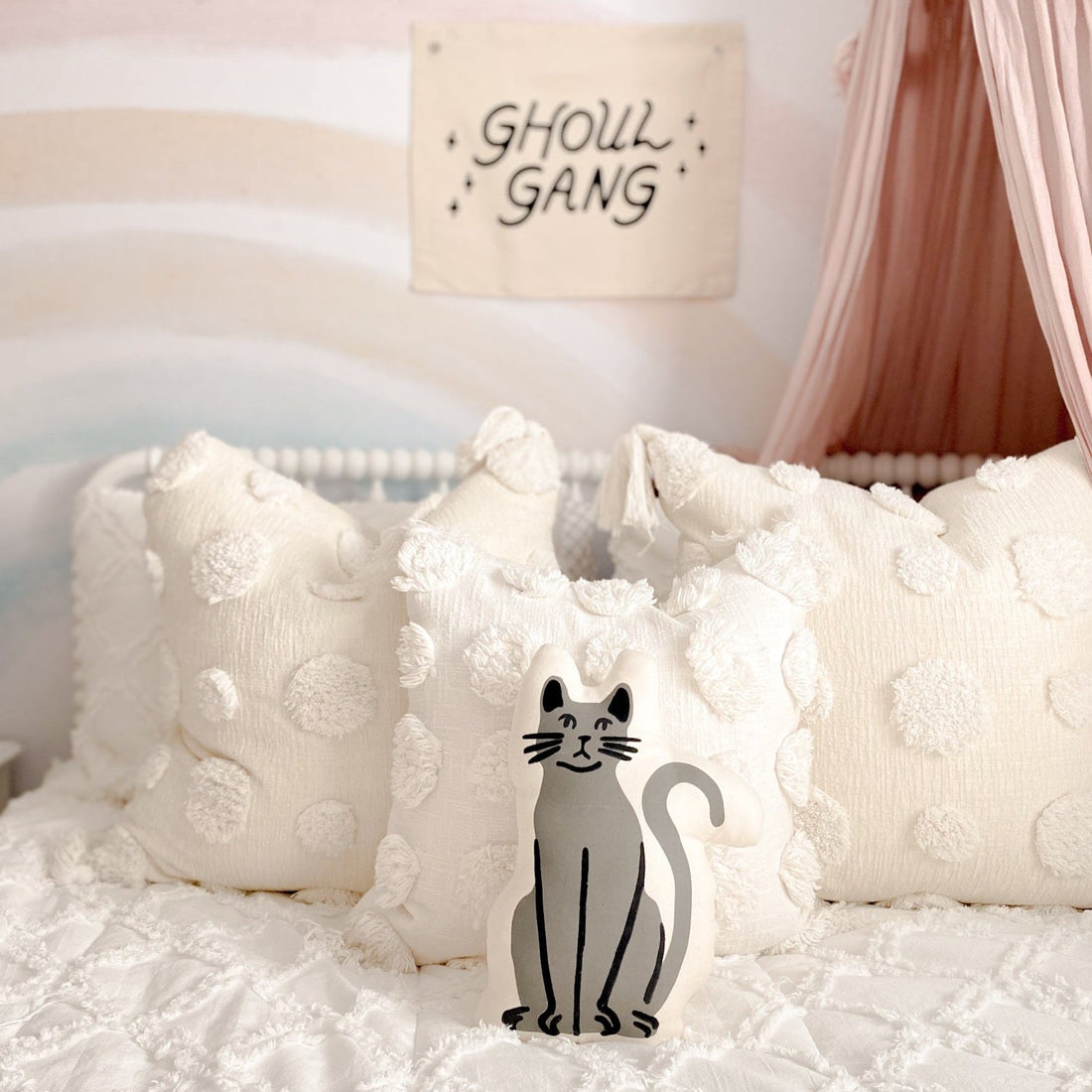 Halloween Cat Pillow - Dark charcoal screen printed sitting cat.