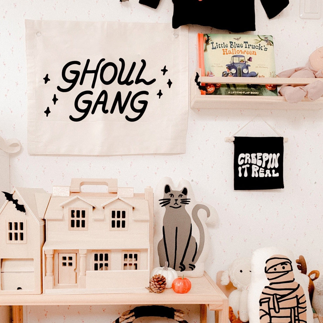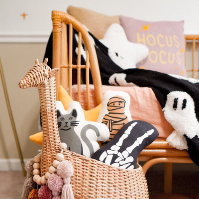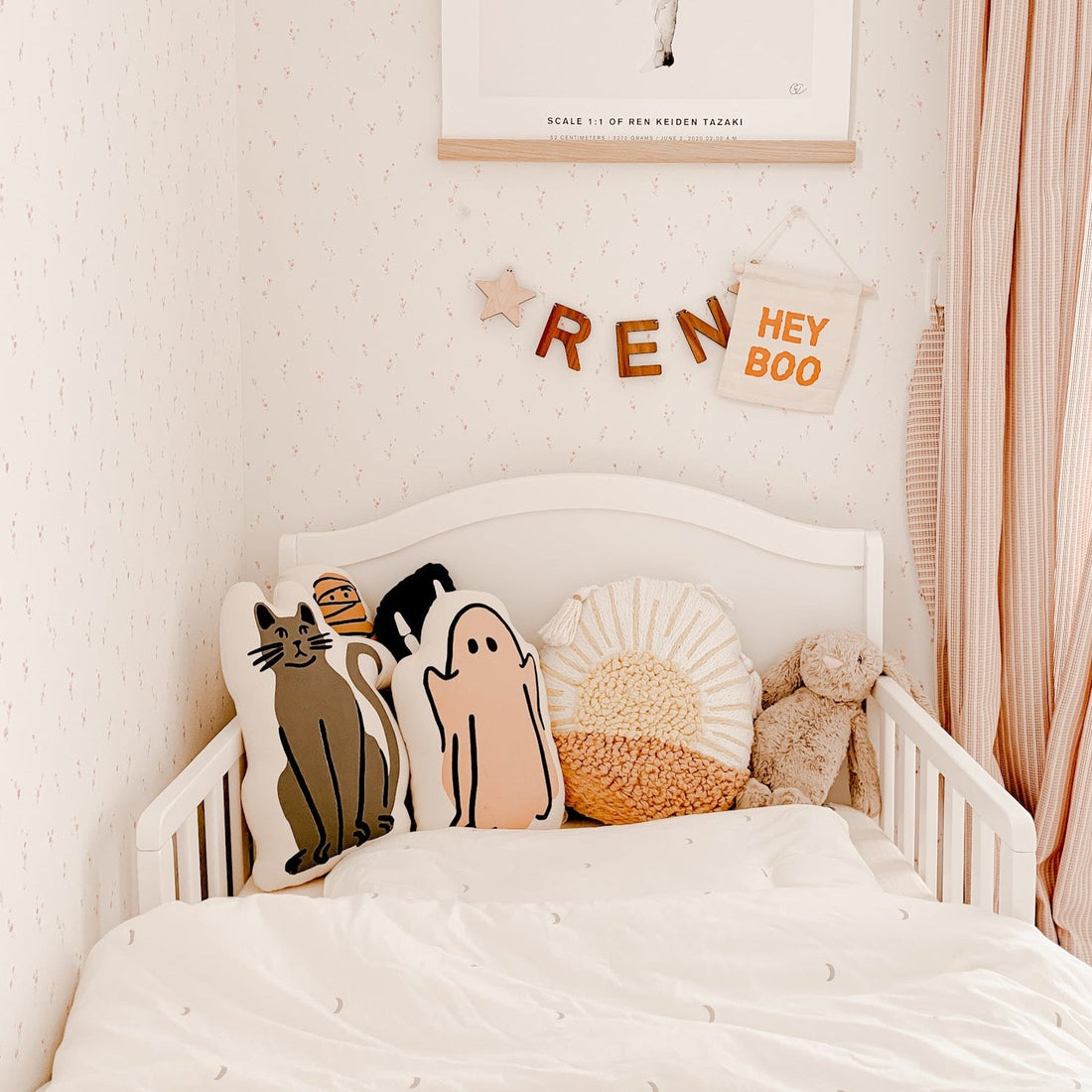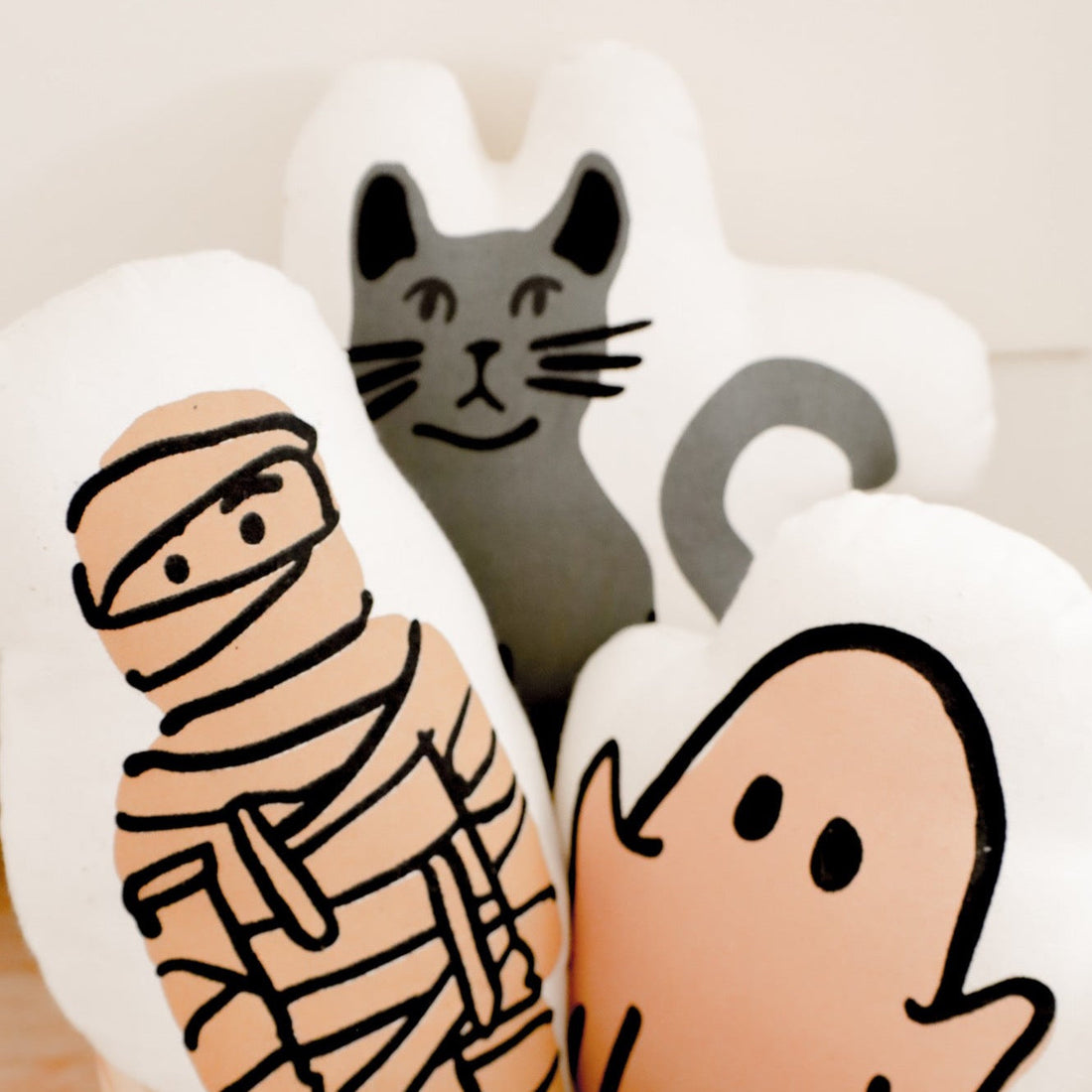 Halloween Cat Pillow - Dark charcoal screen printed sitting cat.
