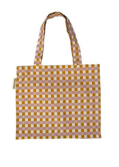 Carry a little joy wherever you go with the Bloom Gingham Canvas Tote Bag. Each tote is hand-sewn and screen printed by empowered artisans in Mombasa, Kenya, featuring a playful gingham design in warm rust and pink tones.