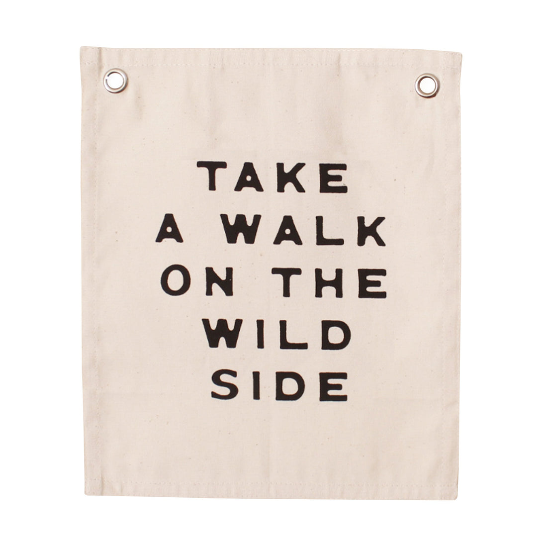 "Take a Walk on the Wild Side" Small Banner. Sewn and screen printed by hand on natural canvas by Kenyan artisans.