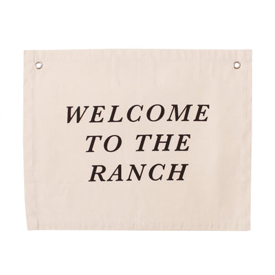 "Welcome to the Ranch" Banner. Sewn and screen printed by hand on natural canvas by Kenyan artisans.