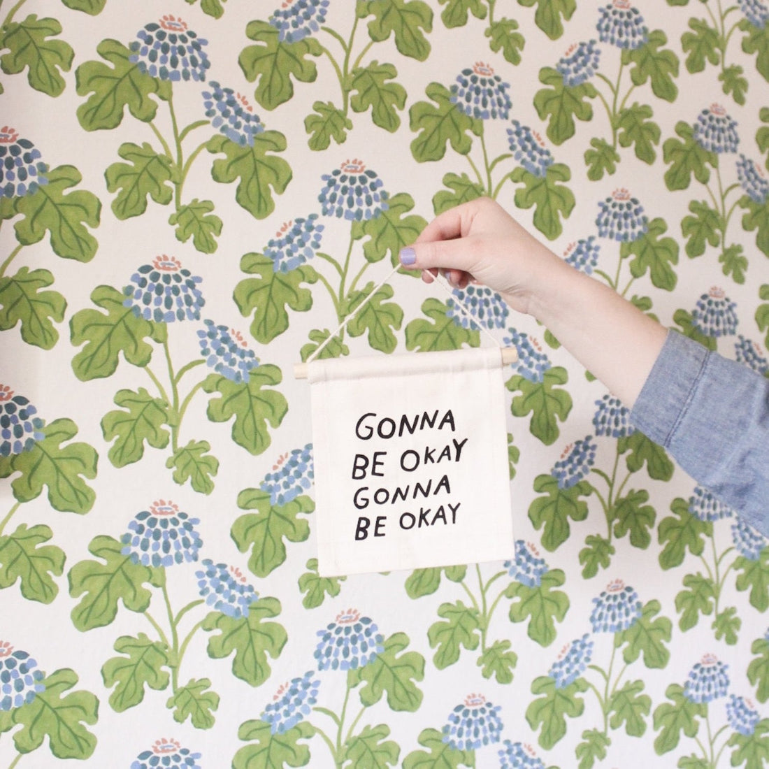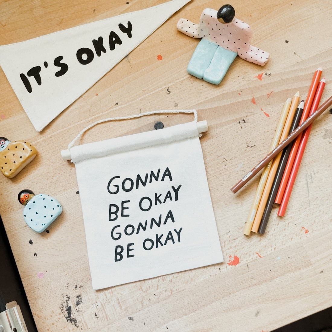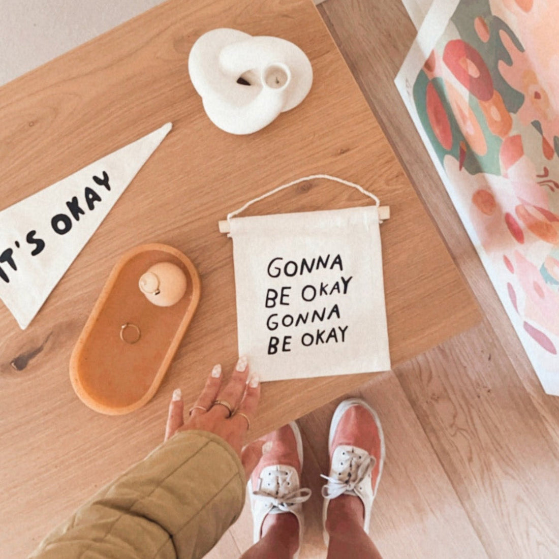"gonna be okay gonna be okay" hang sign made by empowered Kenyan artisans in collaboration with artist Kristen Peers