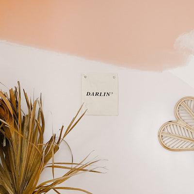 "Darlin'" Small Banner. Sewn and screen printed by hand on natural canvas by Kenyan artisans.