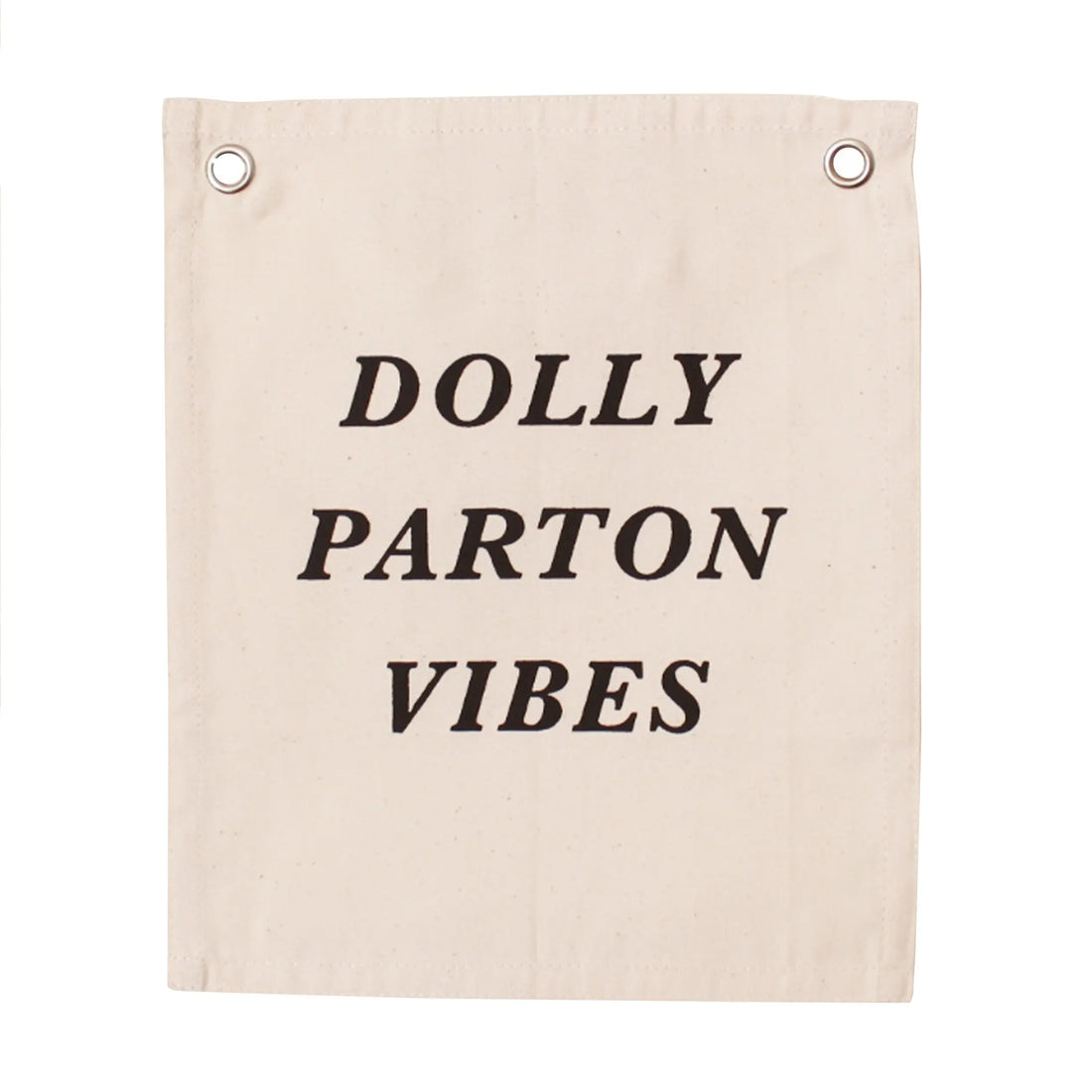 "Dolly Parton Vibes" Small Banner. Sewn and screen printed by hand on natural canvas by Kenyan artisans.