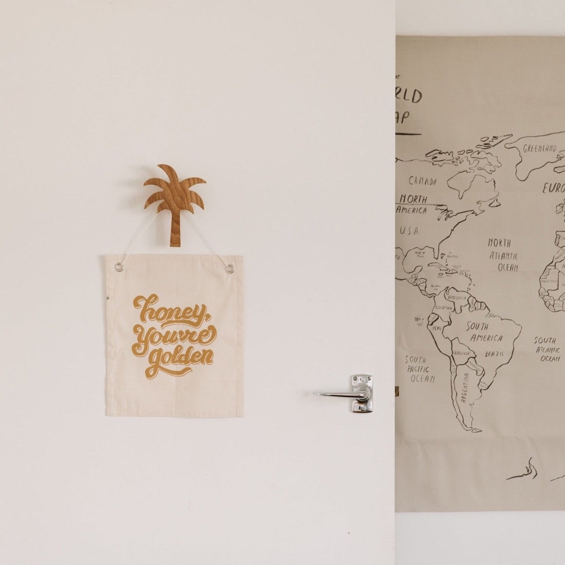 Sewn and screen printed by hand on natural canvas by Kenyan artisans.