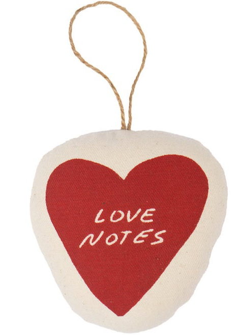 Interactive love notes mini pillow sewn and screen printed by hand on natural canvas by artisans in Mombasa, Kenya.