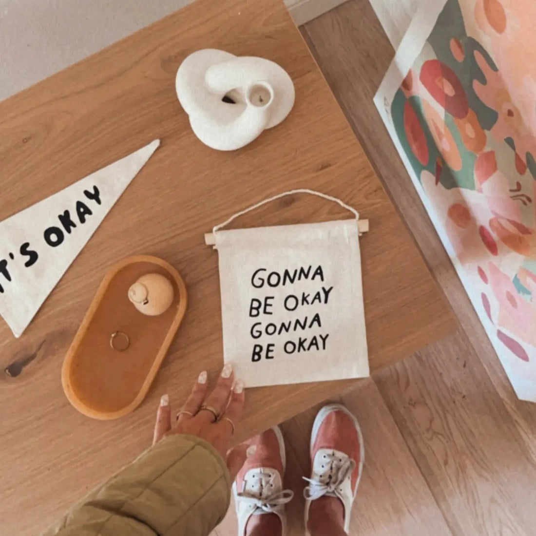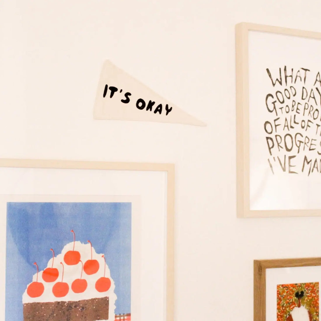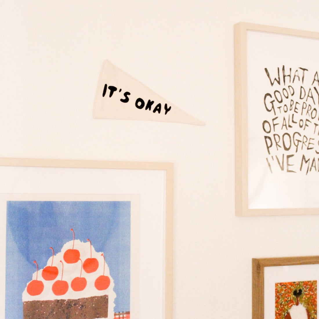 "it's okay" pennant made in collaboration with artist Kristen Peers