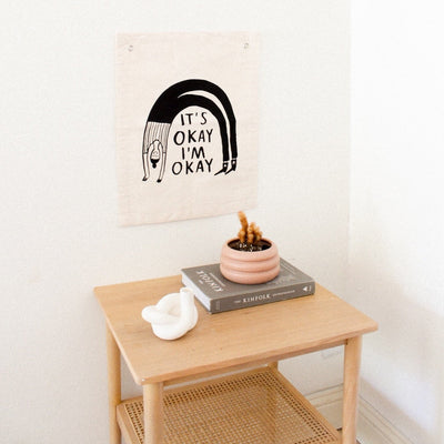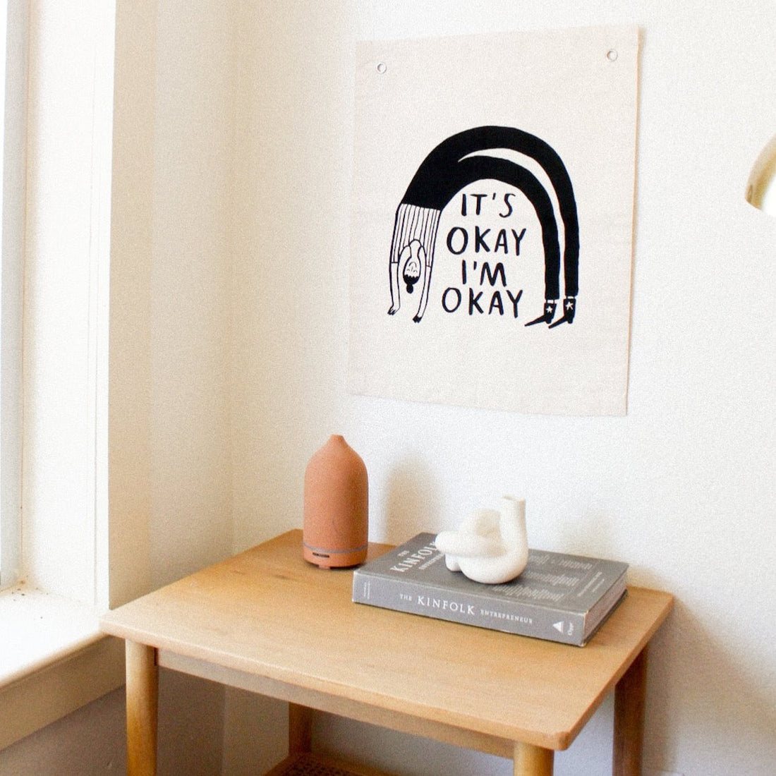 "it's okay i'm okay" Original Design on banner made by empowered Kenyan artisans in collaboration with artist Kristen Peers