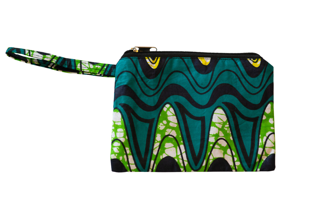 Kitenge wristlet made with locally sourced kitenge fabric, sewn by empowered artisans in Mombasa, Kenya.