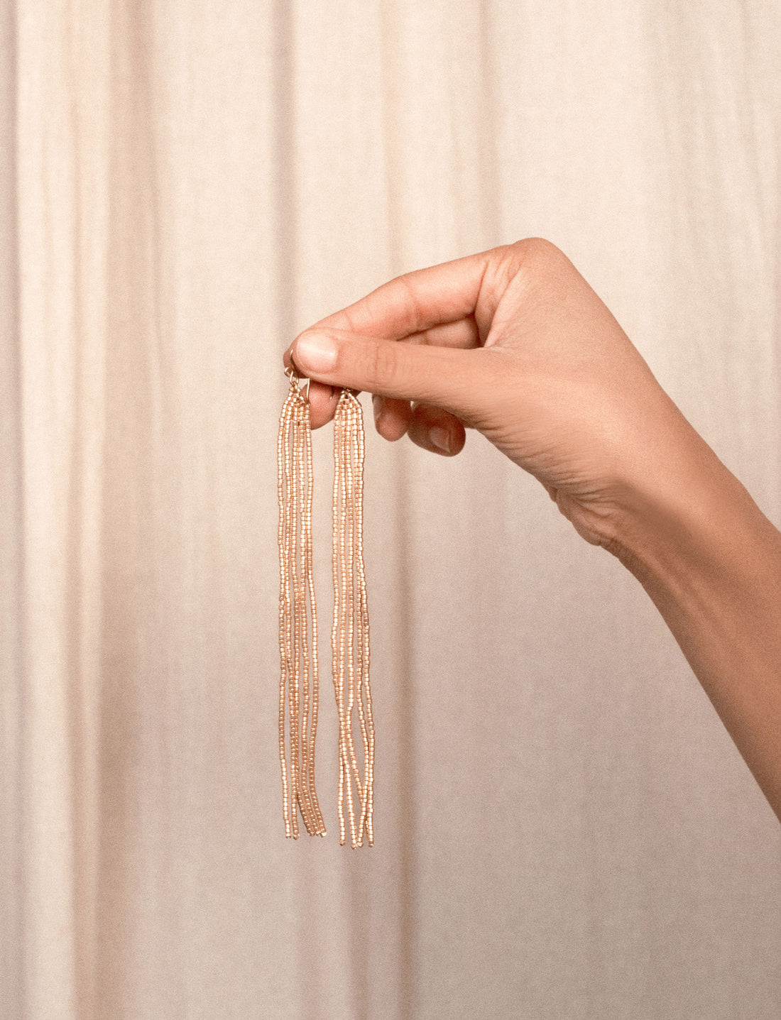 The elongated design adds a touch of sophistication to any outfit, making these earrings perfect for both casual and formal occasions. By choosing these earrings, you support our mission to provide stable, dignified employment and empower artisan communities. Wear them as a symbol of elegance and empowerment, and know that your purchase makes a tangible impact.