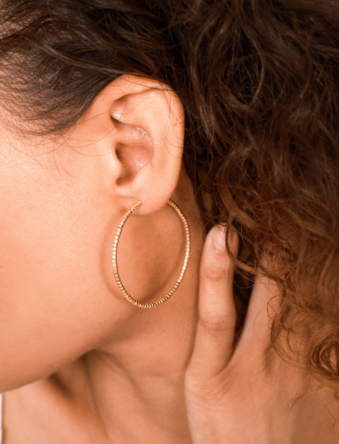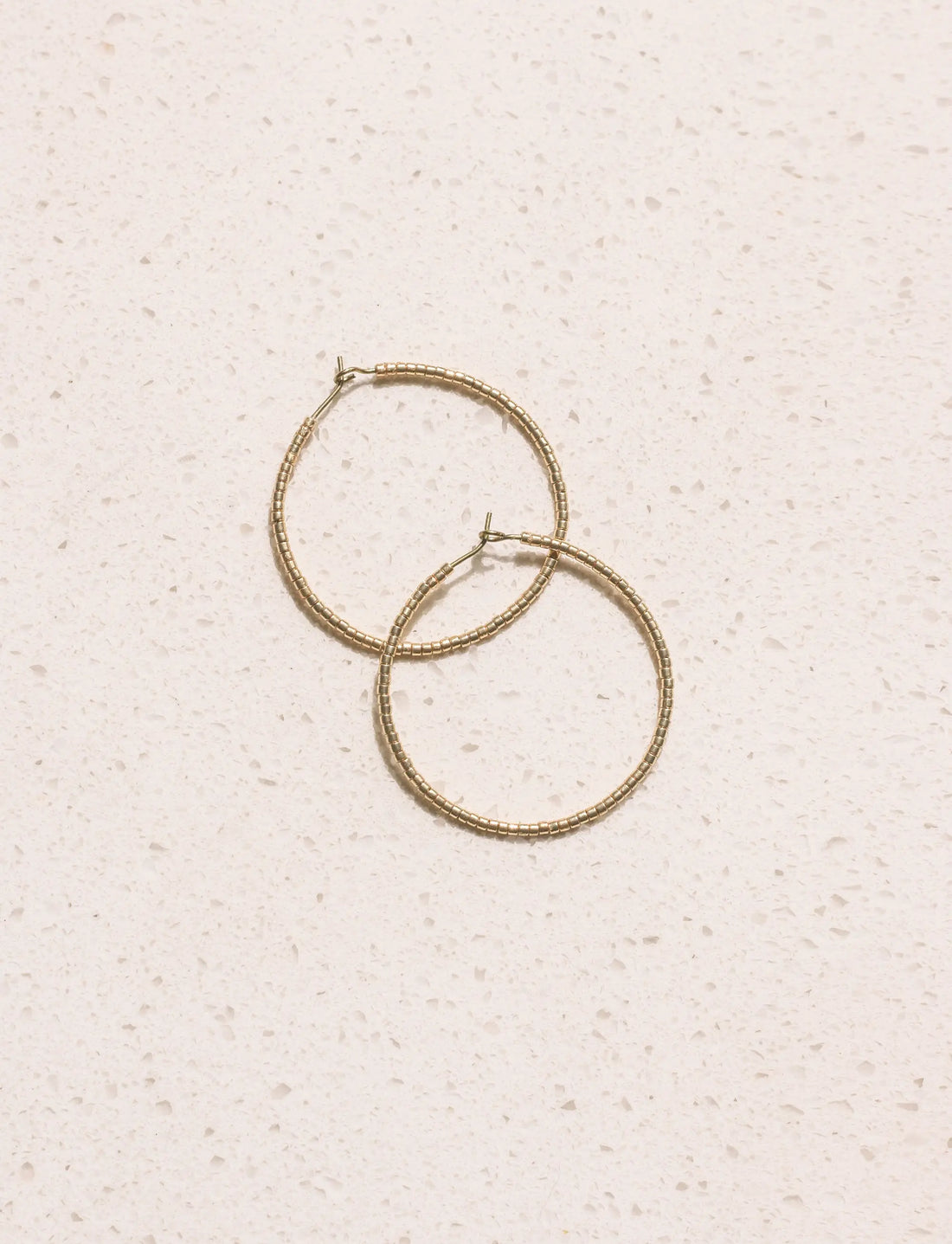 The Kuota hoops are handcrafted by skilled artisans in Kenya featuring Gold Delica beads. Ideal for both everyday wear and special occasions, the Kuota Hoops offer a subtle texture and color that enhances any outfit. Each pair is a testament to our dedication to ethical empowerment and dignified work, making your purchase a catalyst for positive change.
