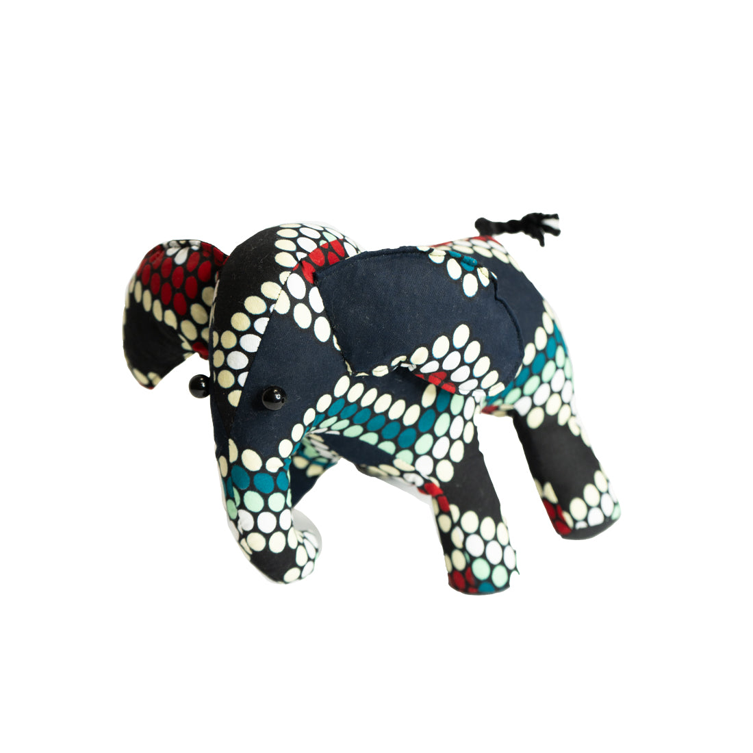 Kitenge elephant made with locally sourced kitenge fabric, sewn by empowered artisans in Mombasa, Kenya.