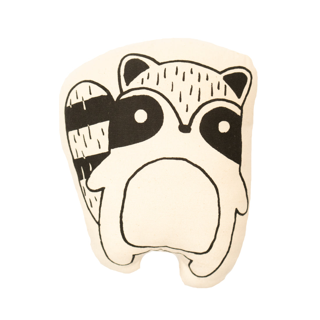 Racoon Pillow - Dark charcoal screen printed sitting Racoon.