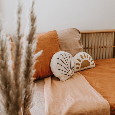Shell Pillow. Sewn and screen printed by hand on natural canvas by local artisans.