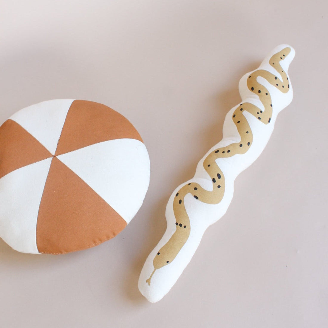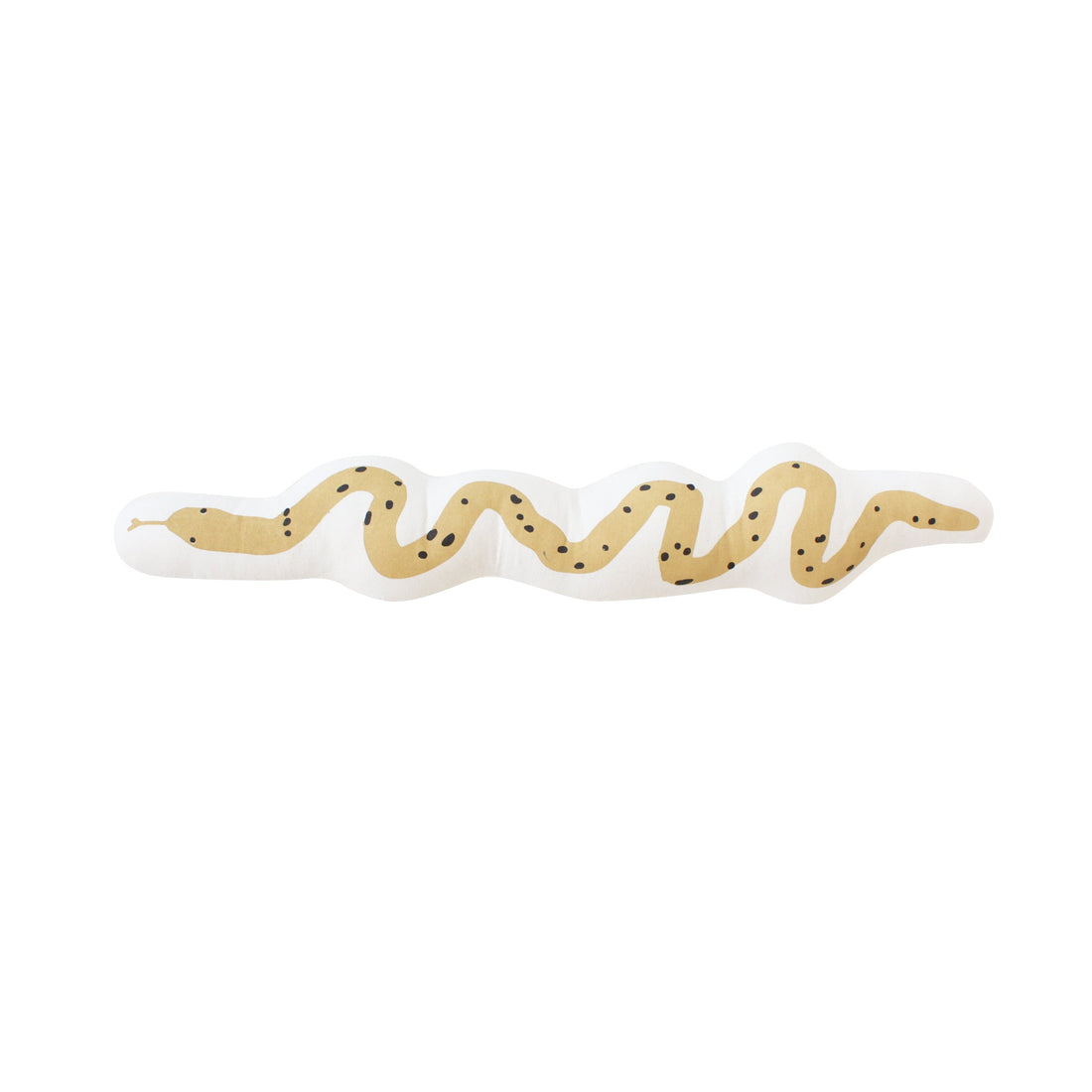 Snake Pillow sewn and screen printed by hand on natural canvas by local artisans.