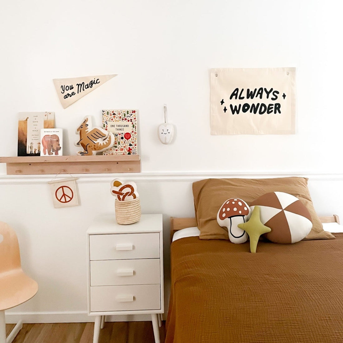 Sparkle Pillow sewn and screen printed by hand on natural canvas by local artisans.