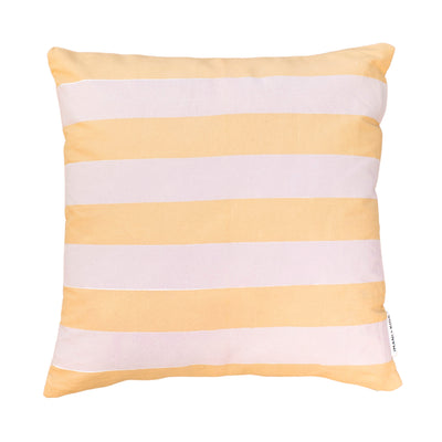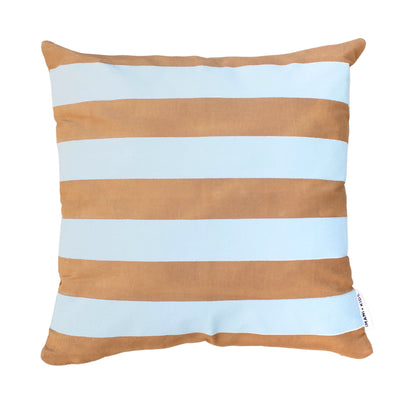 This canvas striped pillow cover is double sided with an easy zipper along one side for an 18" x 18" pillow insert. Comes in three color ways - rust/blue, rust/pink, and peach/pink. Made with soft canvas and screen printed by empowered artisans in Mombasa, Kenya.