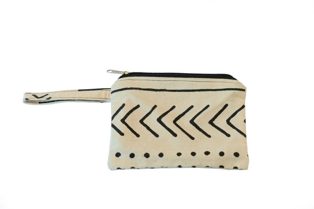 Tribal wristlet made with locally sourced canvas fabric, sewn and screen printed by empowered artisans in Mombasa, Kenya.