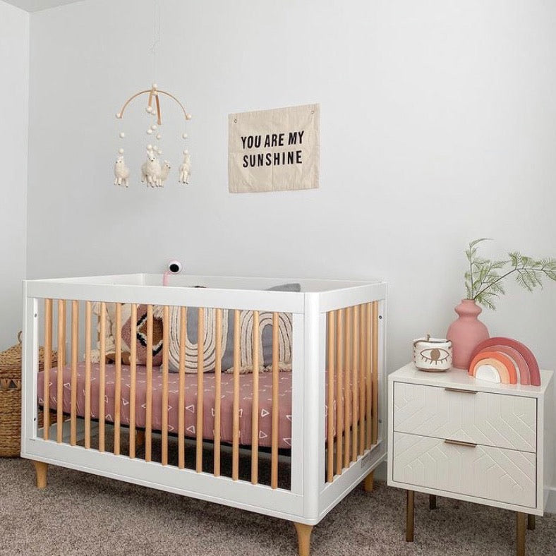 + peach cotton blend fabric with clay colored lettering OR natural canvas with black lettering